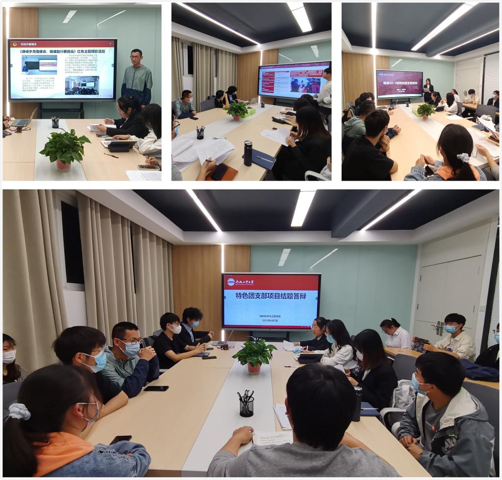 2021年学院团支部特色活动立项5项,其中重点项目2项,一般项目3项。各立项团支部书记依次汇报了支部基本情况、项目开展情况、特色及创新点、活动成效、项目实施存在的问题和改进措施。其中,无机非金属20-1班团支部以“追寻红色记忆,赓续红色精神”为主题,依托“红色畅读,红色体验,红色记忆,红色访谈,红色知识,红色演绎”等六个特色活动,提升班级同学对红色文化的认同,在活动过程中激活红色基因,传承红色精神。金属材料工程20-1班以“涵育家书文化,传承家国情怀”为主题,通过品读体悟不同时代的家书、书写家书、表演家书等方式引导同学们涵养家国情怀。